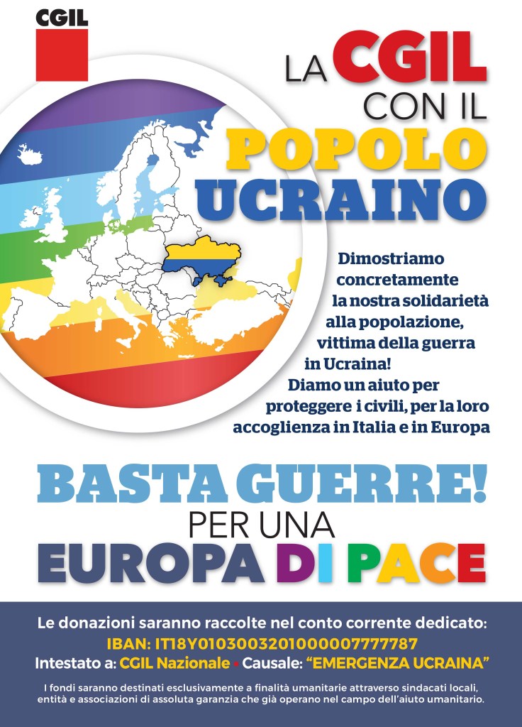 Dimostriamo concretamente la nostra solidarietà alla popolazione vittima della guerra in Ucraina. Diamo un aiuto per proteggere i civili, per la loro accoglienza in Italia e in Europa