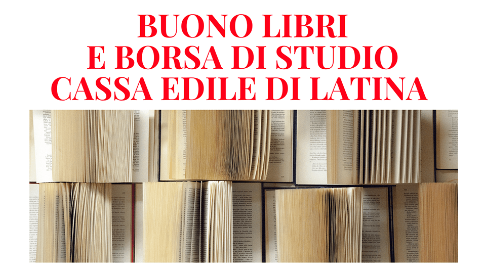 Anche quest’anno la Cassa Edile di Latina eroga ai figli dei lavoratori iscritti che frequentano la scuola I, II e III media un BUONO LIBRO e ai figli che frequentano le scuole medie superiori statali, regionali o parificate una BORSA DI STUDIO.