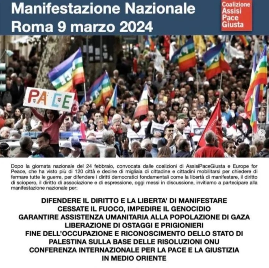 La Cgil scenderà in piazza sabato 9 marzo a Roma per il cessate il fuoco, impedire il genocidio, garantire assistenza umanitaria alla popolazione di Gaza, liberare gli ostaggi e prigionieri, la fine dell’occupazione, il riconoscimento dello stato di Palestina sulla base delle risoluzioni Onu e l’organizzazione di una conferenza internazionale per pace e giustizia in Medio Oriente. Una mobilitazione in difesa del diritto di manifestazione, sciopero e libertà di associazione.